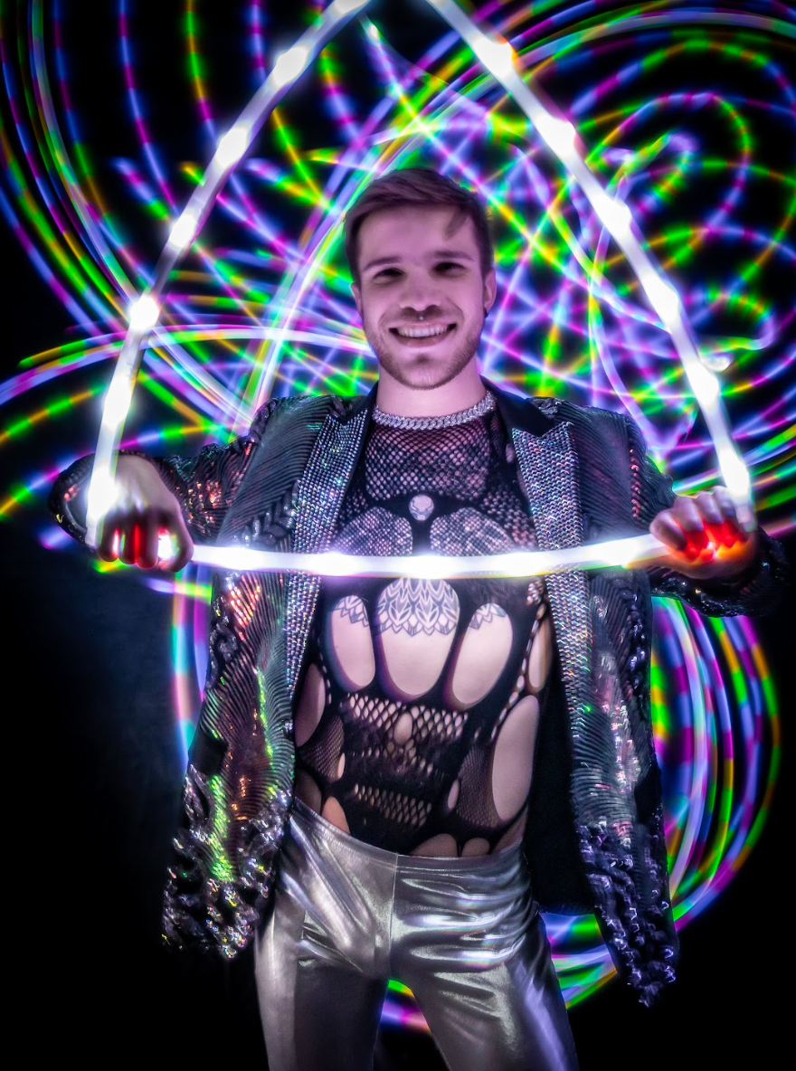 Most smart hoops have LEDs that shine only to the outside edge of the tubing. The Starlight is different. The LEDs shine a full 360 degrees around, fully lighting up tubing. Because of this, fewer LEDs are needed to create stunning effects. That also means the batteries last longer on a charge, making this a perfect prop for long flow jams, performances, and festival use!