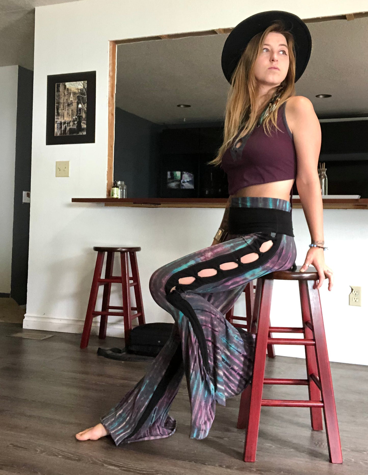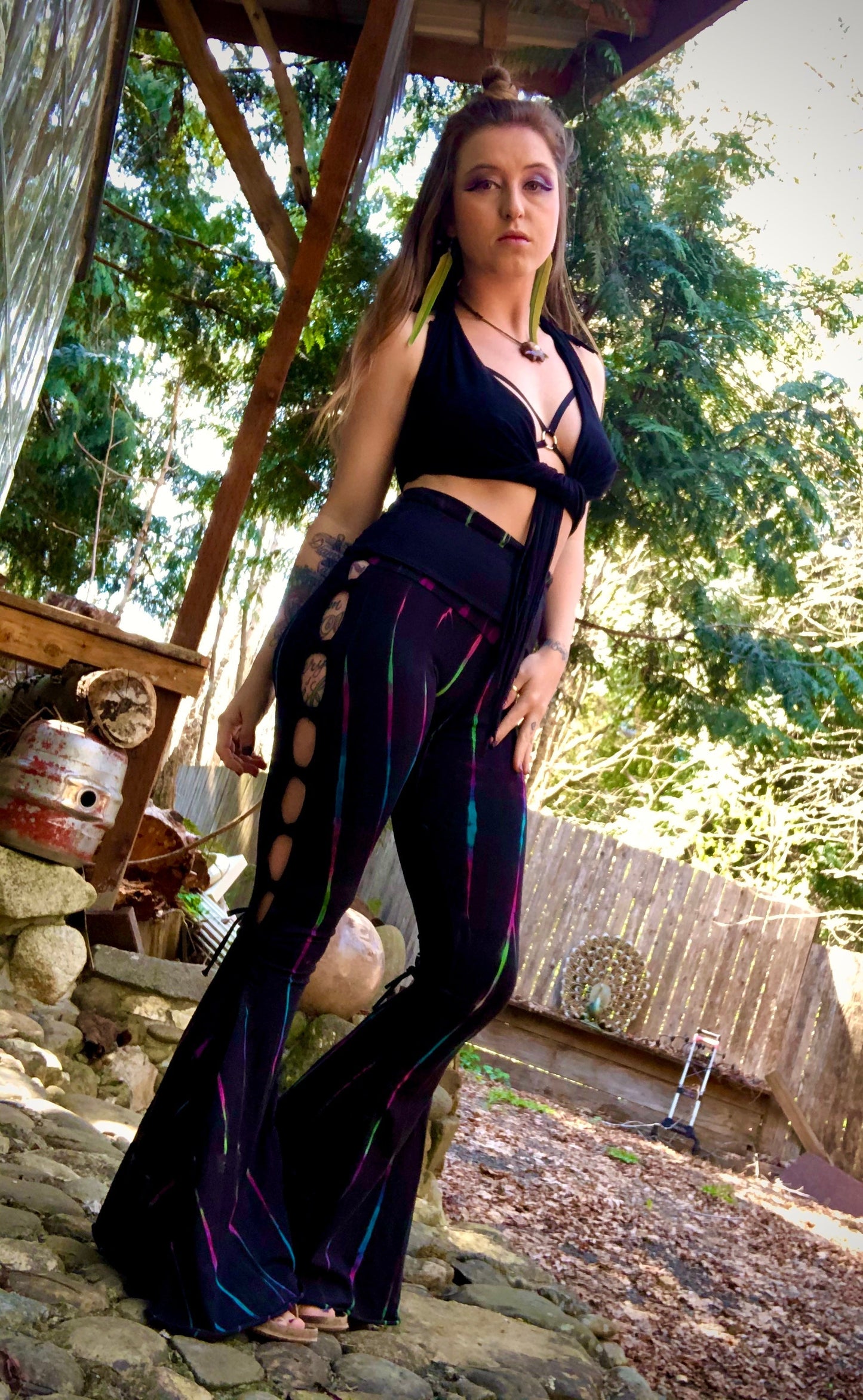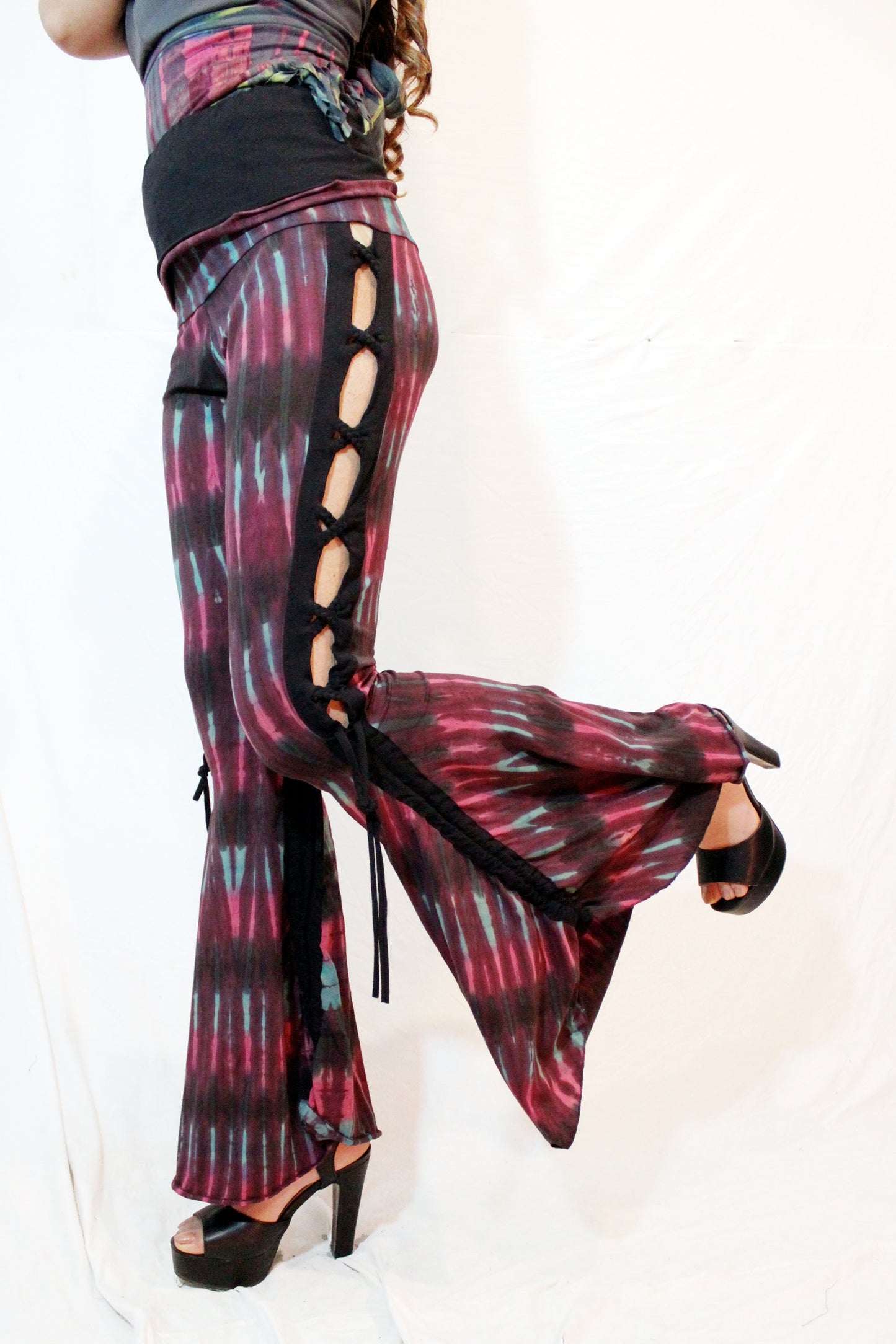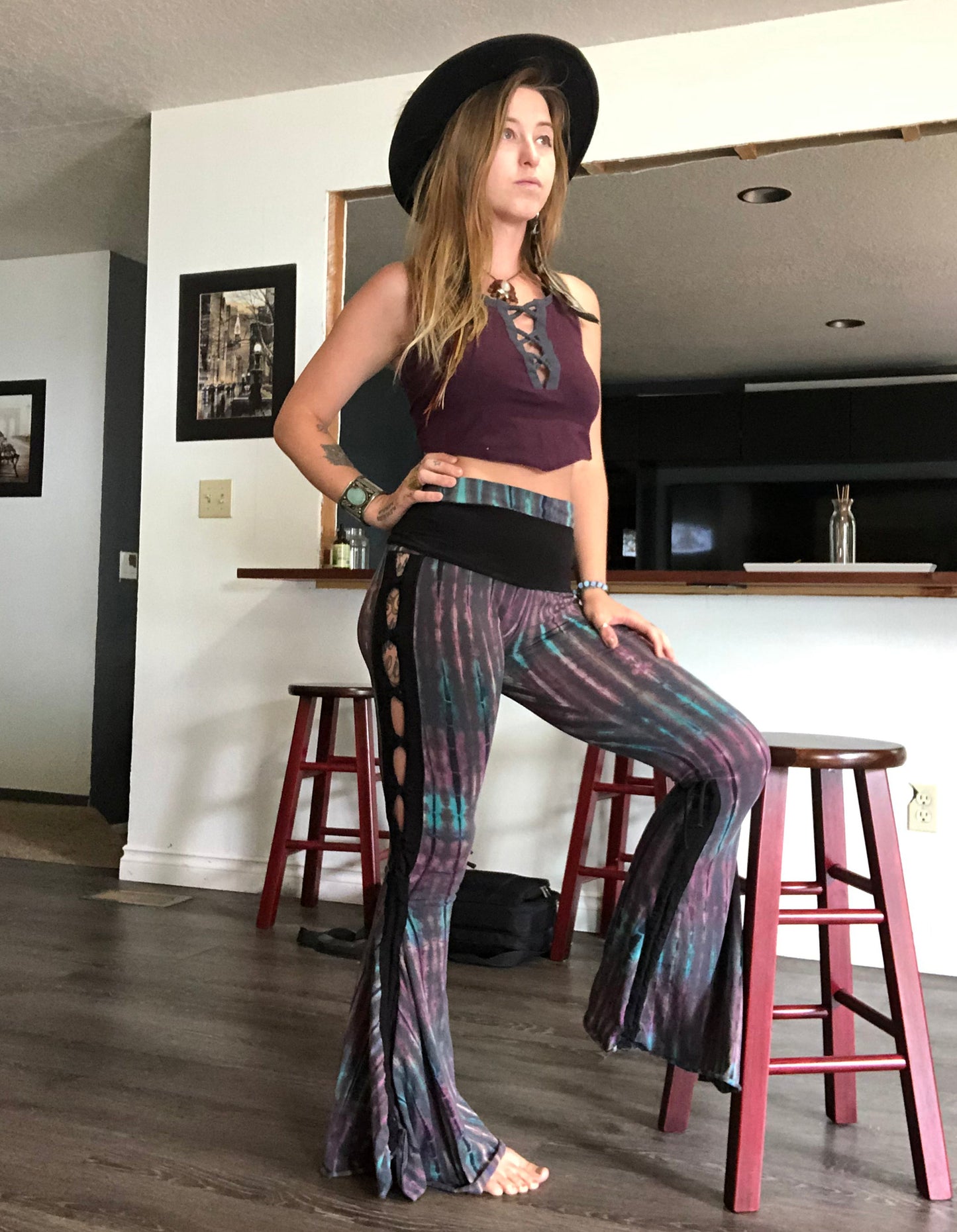 Flirty fairy element found with the Peek-a-boo braided sides along the upper out leg. Get your jam on and disco walk down to funky town in these slimming vibrant bells.