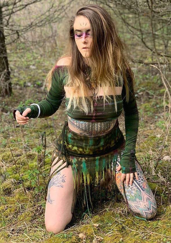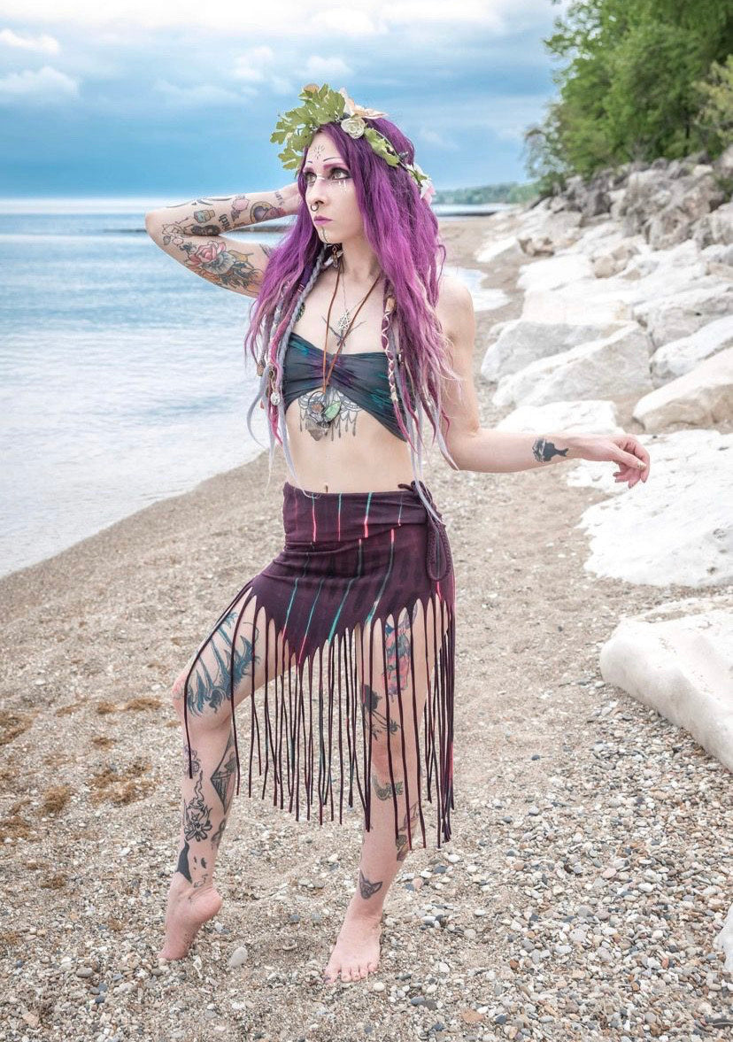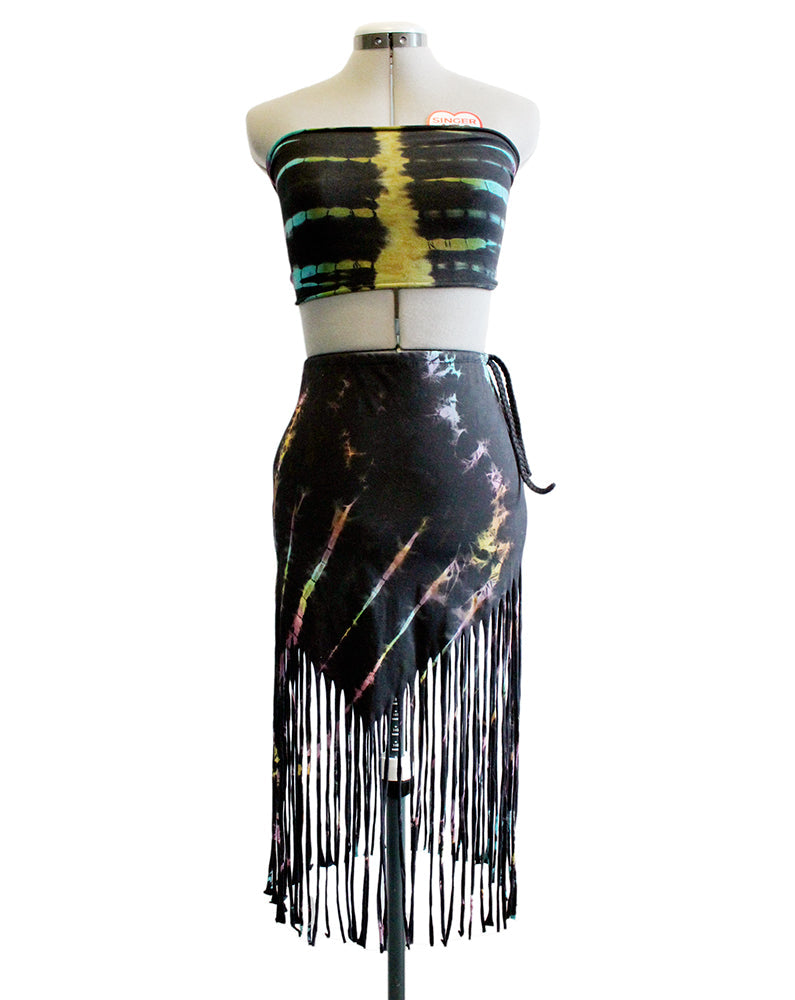 Drawstring Fringe Tie Dyed Skirt [WSO-511]