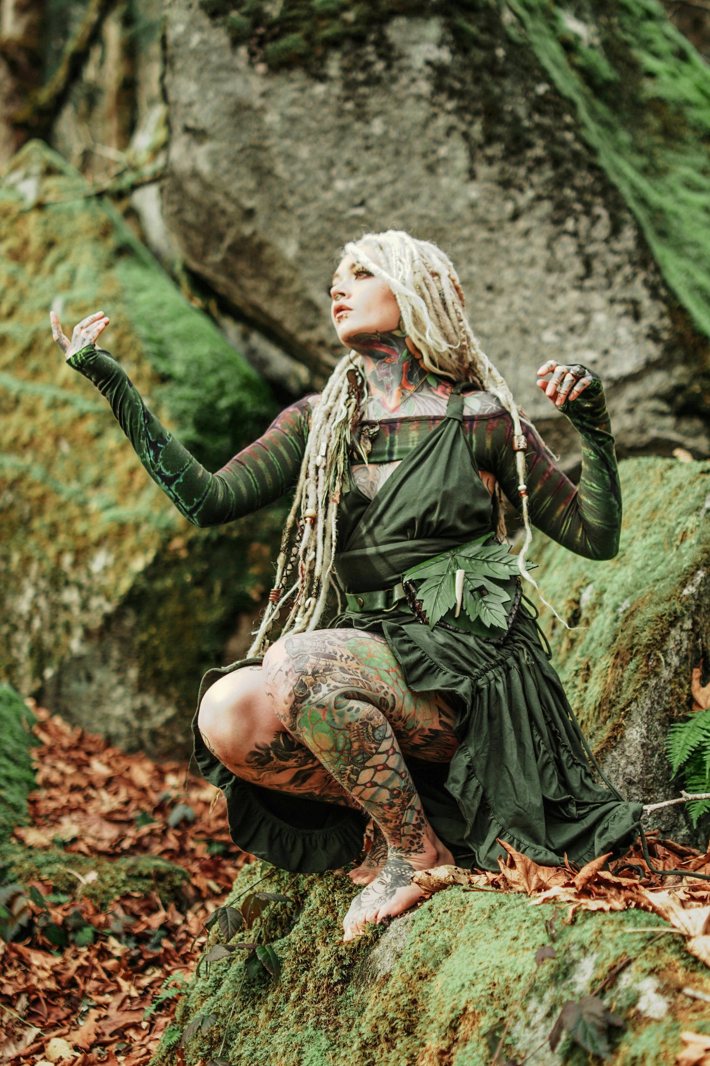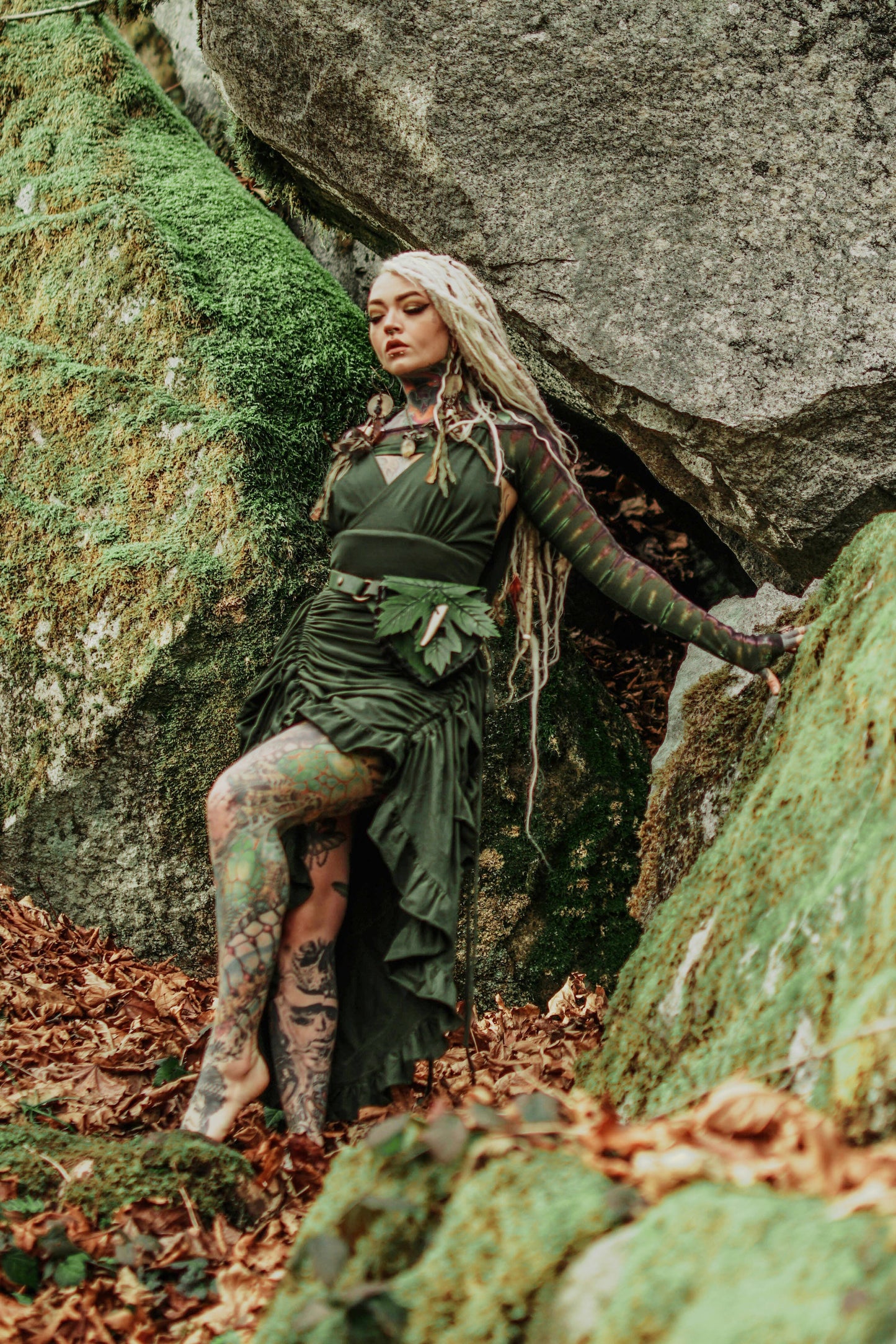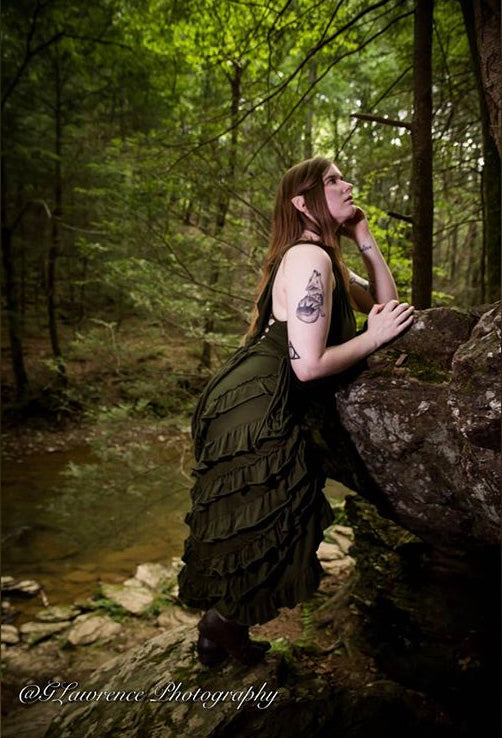 Are you a petite fairy? Or a voluptuous goddess? This dress will fit either. Carefully conceived to encompass any shape, use the bust panel ‘cuffs’ to alter the shape and fit of each of your ‘gals’. Make sure to pull and lift the bust panels towards your back when tightening the dress : everything is relative after all. Coax the braided rope ties to your desired fit and use the ends as you wish, wrap them in front of your body for a Avalon look..