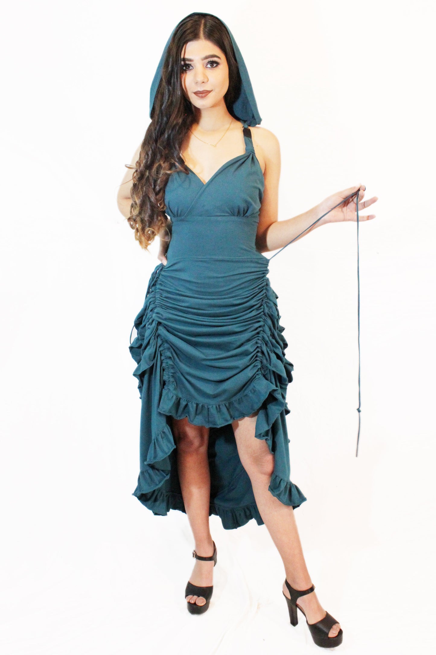 Be elegant and innocent while wearing the maxi full length gown for your fairy social gathering. May all eyes that fall on your beautiful back wonder what fairy is this? And as you flirt your way thru the fairy gathering, you shield your eyes from (some) of the attention with the adorable pixie hood.
