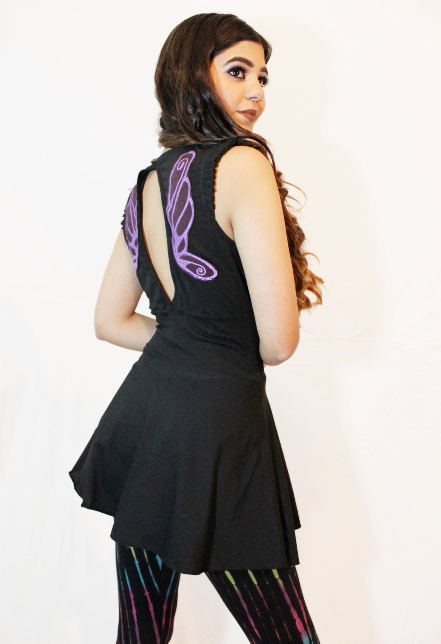 The hourglass shape is flattering, shorter than the Fairy Wing Dress. When you wear the Simple Fairy Dress you can relax, let go of your tummy, let your body be itself as the flared shape creates a beautiful ‘apple core’ shape that all feminine fairies love and feel comfortable in.