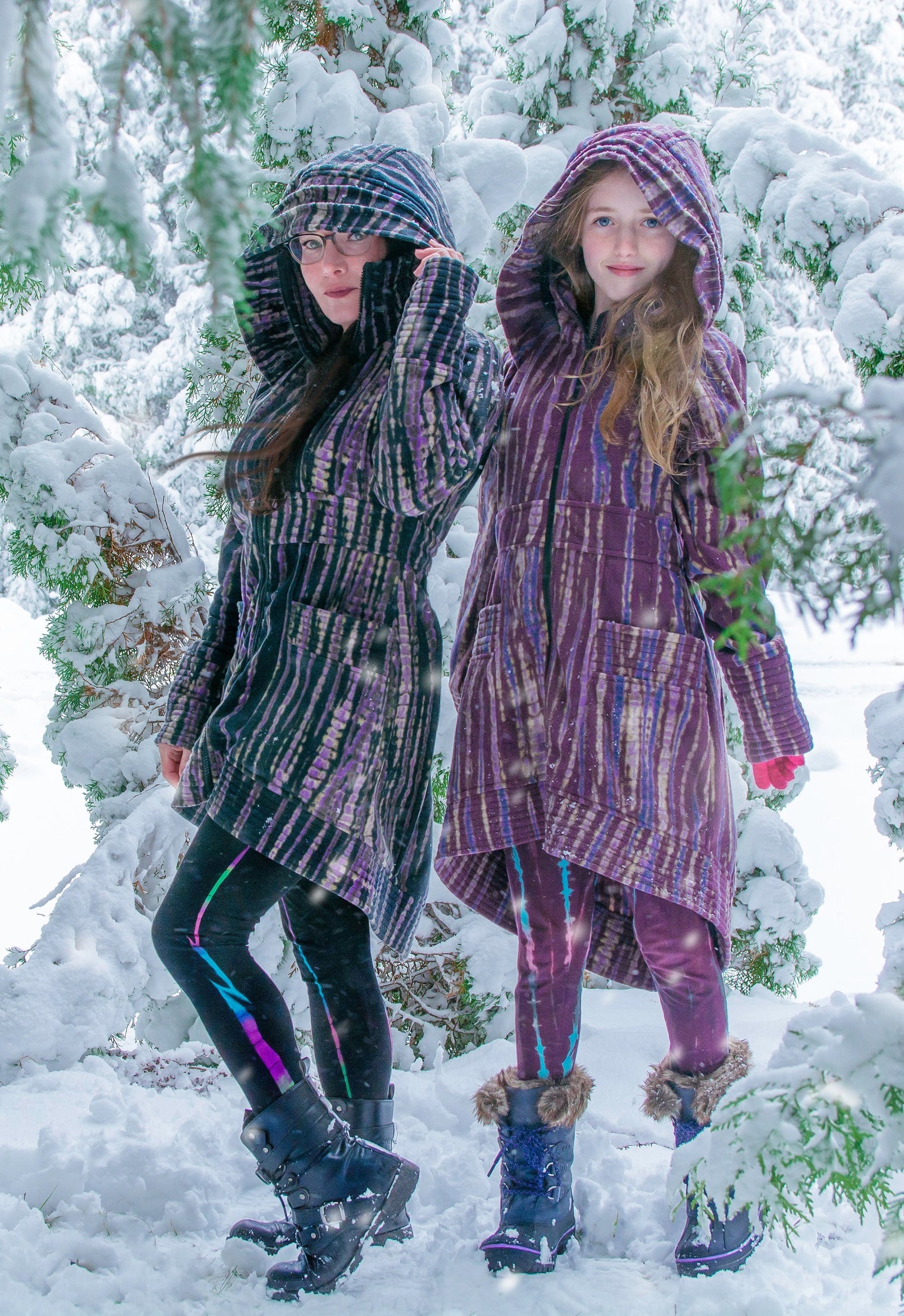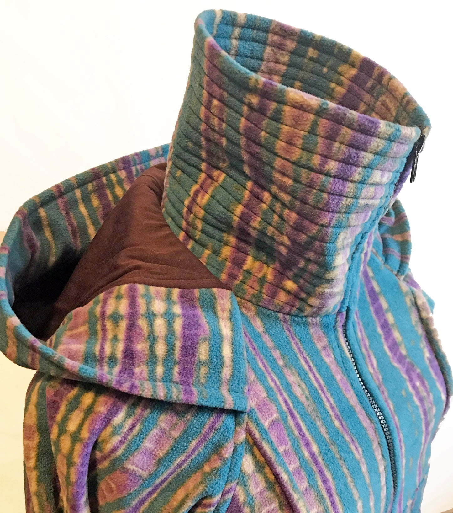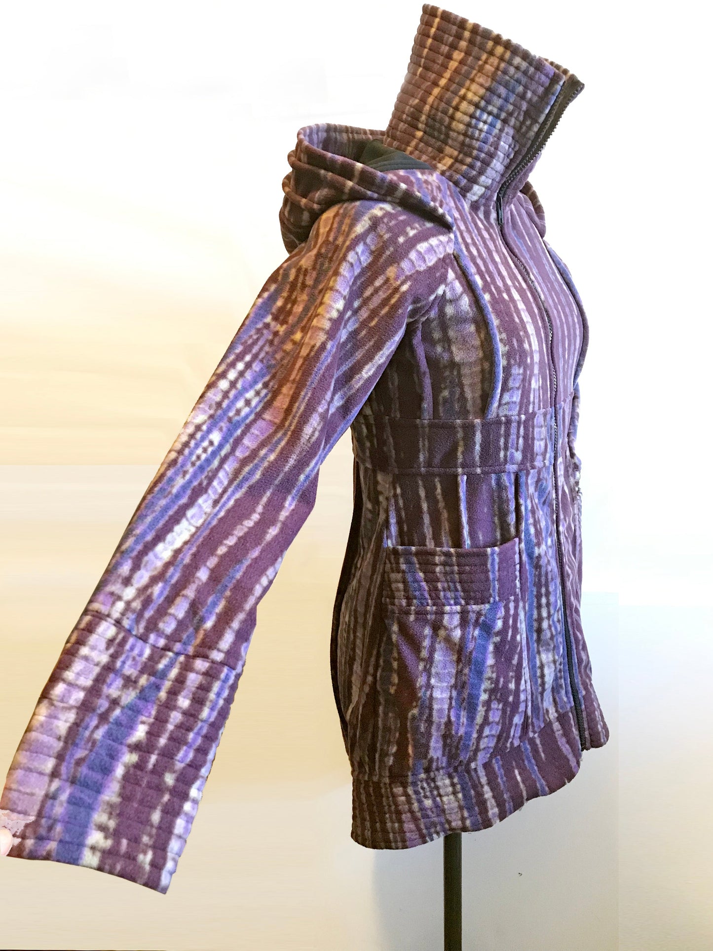 Adorable while being functional and comfortable. The super soft Fairies Fleecey will keep you warm, prepared, and can be worn under your parka too. In a flattering hourglass shape along with vertical Tie Dyed stripes, this hoody is slimming while serving your fairy needs for generous pockets and a lined hood.