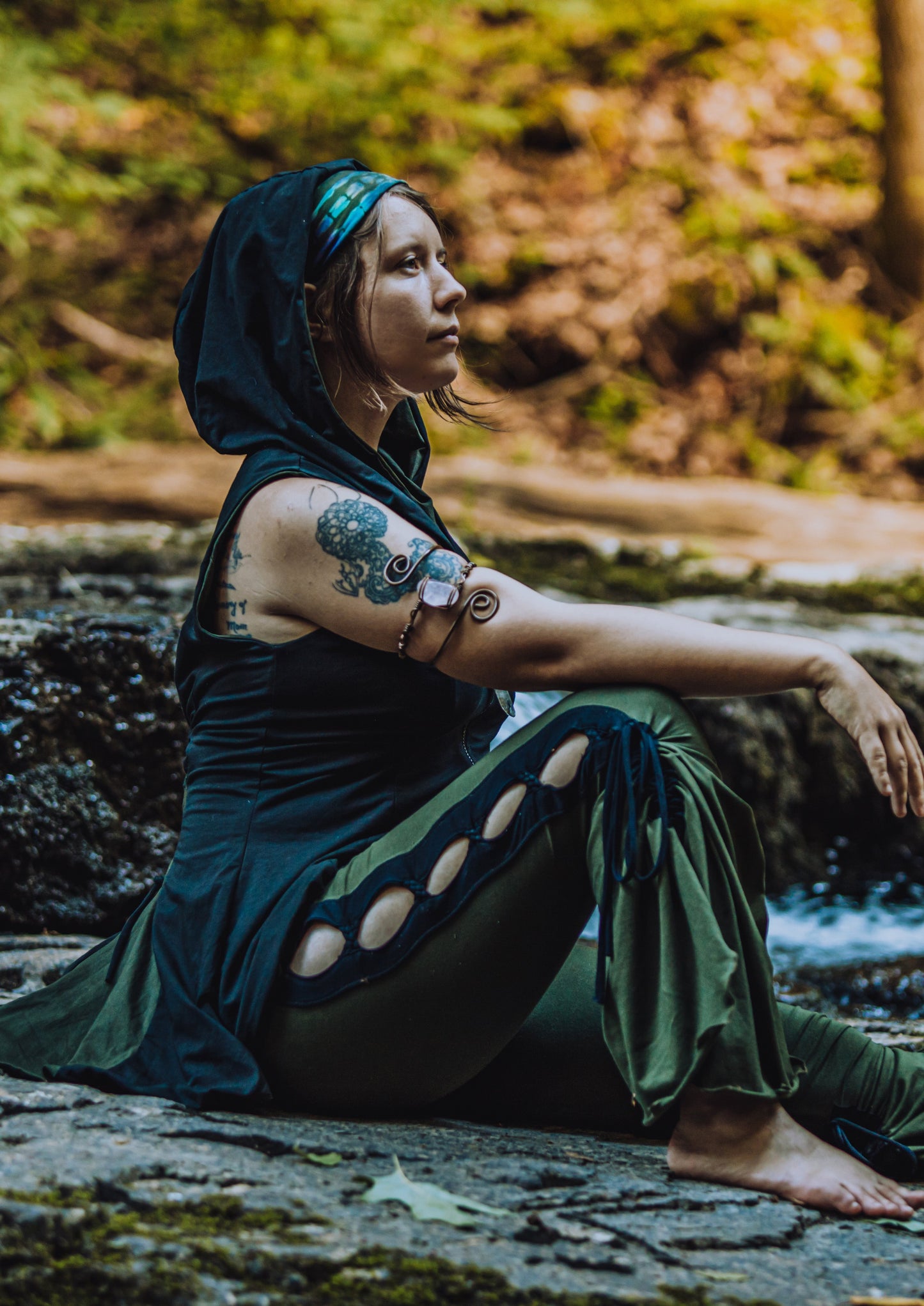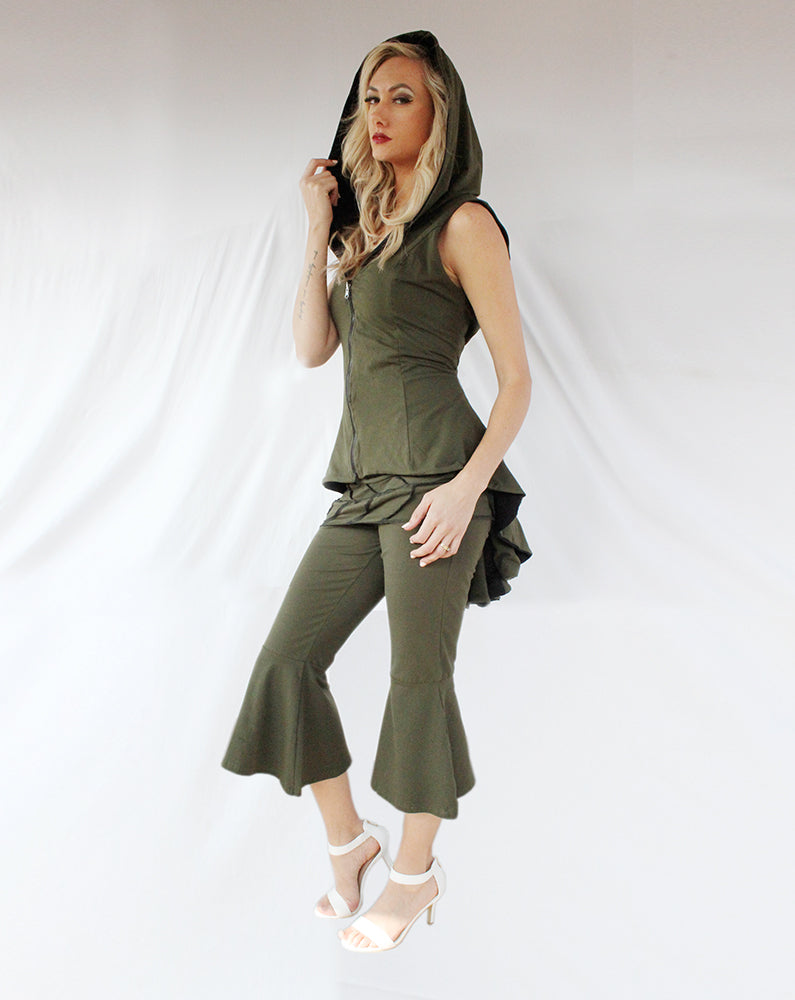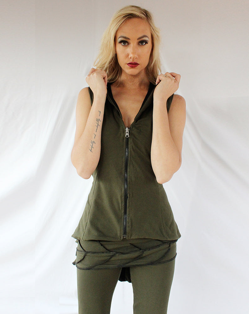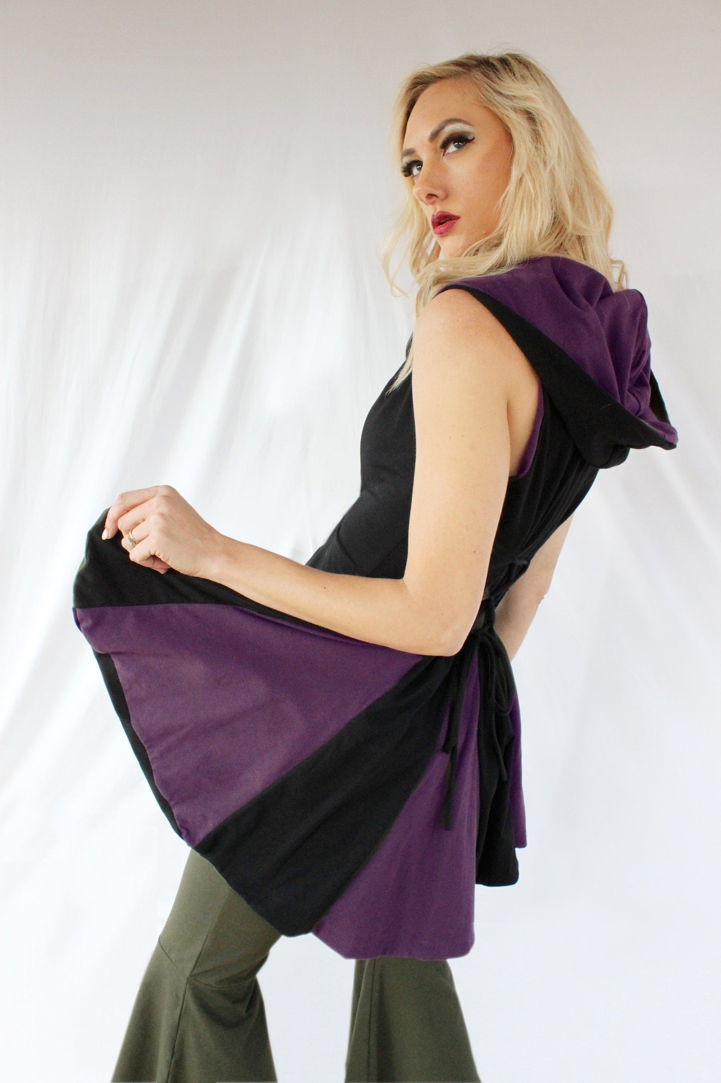 Unleash your inner acrobat! Here we’ve managed to unite the mystery of a roomy hood, the fit of a zip-up vest, and the lacy sexiness of a corset all in one comfortable, versatile, and most of all, REVERSIBLE, design!